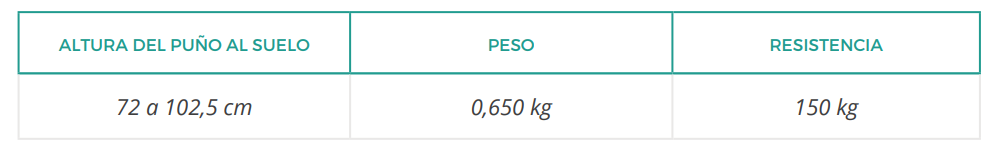 · Regulación de caña desde 72,5 a 102,5 cm de altura del puño al suelo.