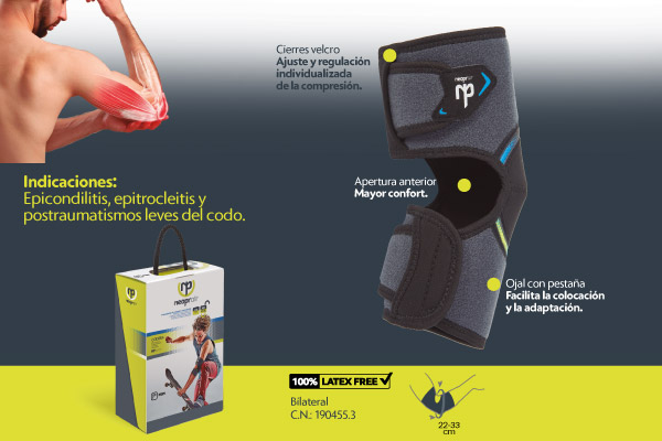 Conformada con dos bandas, distal y proximal, para un óptimo soporte y compresión. Sus ojales con pestañas facilitan la colocación y la adaptación impidiendo la rotación de la prenda. Incorpora cierres de velcro que facilitan el ajuste y permiten regular la compresión de manera individualizada. Apertura anterior para mayor confort. Bilateral.