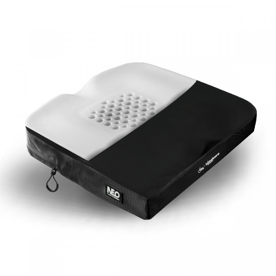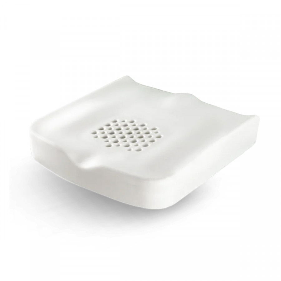 Las formas de espuma circulares, reducen la tensión superficial y facilitan la inmersión de los isquiones reduciendo los puntos de presión. Forma cóncava al final del cojín que permite la liberación del coxis, evitando cualquier punto de contacto en él.