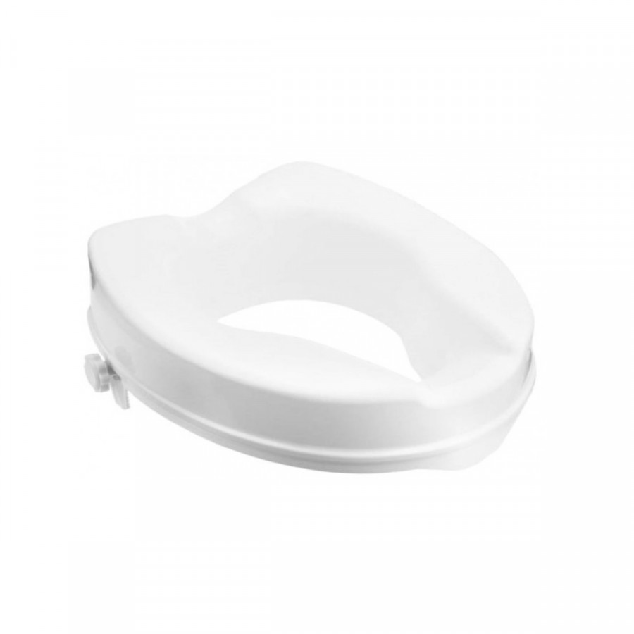 Elevador de Inodoro Universal con anclajes graduables, fácil de instalar. 2 Torniquetes laterales regulables garantizan la compatibilidad en la mayoría de inodoros del mercado.
