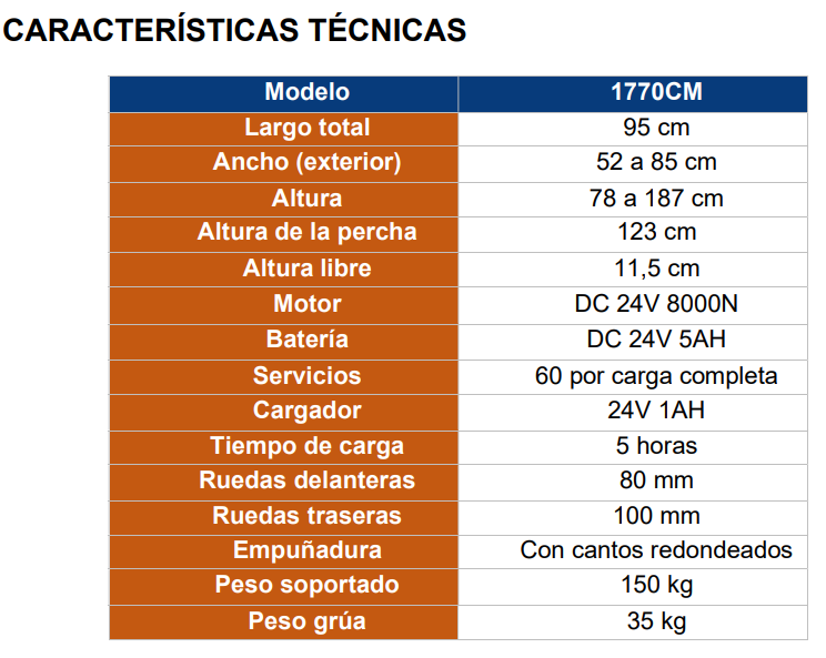 Fácil de manejar en espacios reducidos, con capacidad de elevación requerida para el cuidado doméstico.