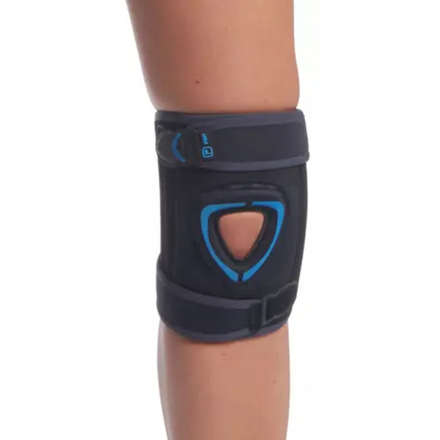 Dotada de 4 estabilizadores en espiral que mejoran el control medio-lateral de la rodilla permitiendo el movimiento de flexión. Su rodete rotuliano anatómico ayuda a mantener la estabilidad de la rótula durante su uso. Dos bandas a modo de cierre, permiten regular la compresión de forma individualizada, dejando libre el hueco poplíteo.