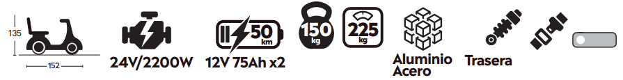 Sistema de luces integrado: faro, luces traseras, intermitentes y luces de emergencia.