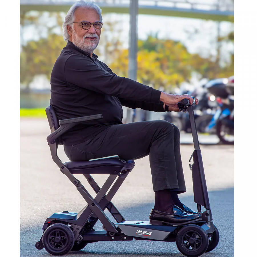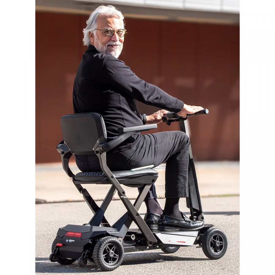 Los reposabrazos del scooter Lanzarote son abatibles y fácilmente desmontables para mayor comodidad y accesibilidad.