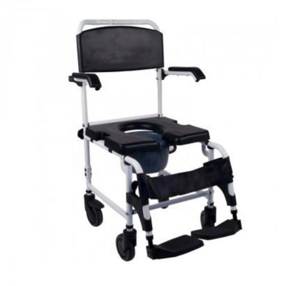 Esta silla de ruedas para ducha con inodoro es un producto de apoyo para el aseo. Puede utilizarse directamente sobre el inodoro haciendo funciones de elevador de WC. Asimismo, al disponer de cubeta, se puede usar en cualquier parte del hogar. Su uso es correcto bajo el agua. El asiento y el respaldo son blandos, lo que proporciona mayor comodidad.Los brazos abatibles para facilitar la transferencia lateral. Para poder ser utilizada como silla autopropulsable (opción kit rueda 600), las ruedas traseras no deben estar colocadas.