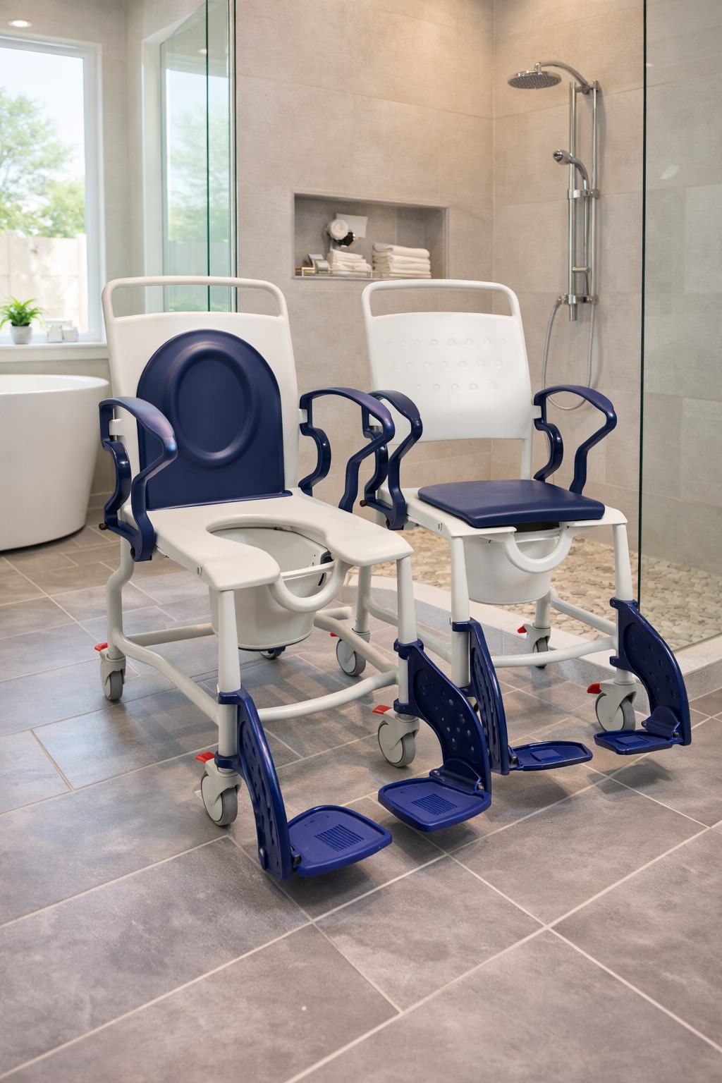 Mejora la autonomía, la seguridad y la higiene diaria con esta silla de ruedas para ducha y WC, una solución práctica y funcional para cualquier hogar que necesite cuidados especiales y confort en el baño.