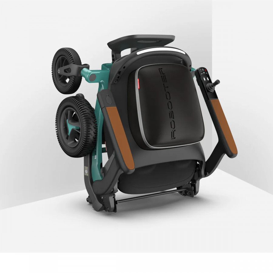 Pliegue su silla de ruedas eléctrica para interiores E40 sin esfuerzo en sólo dos sencillos pasos. No es necesario desmontarlo y su tamaño compacto garantiza un fácil almacenamiento.