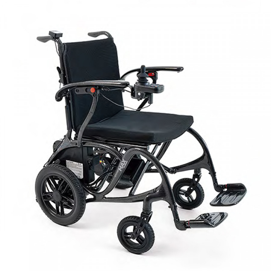 La silla de ruedas eléctrica Max Carbon, fabricada en fibra de carbono de gran resistencia (soporta hasta 120kg peso), es el dispositivo ideal para la movilidad en espacios reducidos gracias a su diseño único y compacto y para la movilidad en exterior gracias a sus dos motores de 150W que alcanzan hasta 6 km y superan 10° de pendiente.