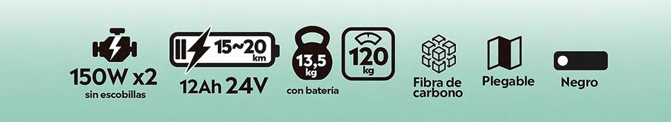 Su estructura ultraligera, pesa únicamente 13,5kg, incluida batería, la convierte en el vehículo ideal para transportar y acompañarte en tu día a día. De fácil plegado tipo acordeón e inmejorables prestaciones.